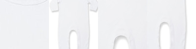 Long sleeved sleep suit with feet. Envelope neck line, popper fastening around legs allowing for clear front panel for easy decoration. Contrast edging around neck and cuff.