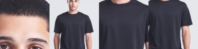 Reinforced taped neck. Shoulder seams with twin needle stitching for durability. Crew neck. Set in sleeves.