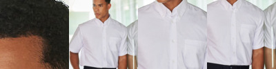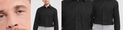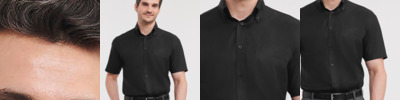 Soft button-down collar. Cross stitched motherof- pearl effect buttons. Short sleeves with narrow cuffs. The exclusive B&C Tie-Fix©. Back yoke with 2 overstitched side pleats. Left chest pocket. Inside lap seams for perfect finishing. Horizontal last buttonhole. Mitre-shaped bottom hem side reinforcement. Curved bottom hem.