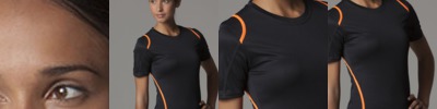 100% polyester with moisture management. Self fabric round neck. Contrast binding running over the shoulder down the back and round to the front finishing at the hem. Self coloured flatlock stitching down centre sleeves back and front. Twin needle cuffs. Straight front hem curved back hem. Gamegear® woven label. Size 8, 10, 12, 14, 16