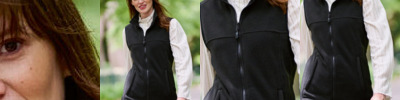 Interactive. Elasticated bound armholes. 2 zipped lower pockets. Adjustable shockcord hem. Shaped fit. Size 10, 12, 14, 16, 18, 20