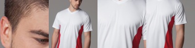100% Polyester with moisture management. Contrast side panels. Contrast ‘V’ inserts at lower hem. Straight hem. Self fabric ‘V’ neck. Gamegear® /Cooltex® label printed on the inside back neck. Cooltex® woven label sewn in outer side seam.