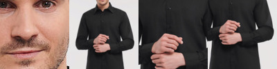 Semi cut-away collar. Cross stitched mother-of-pearl effect buttons. Folded hem sleeves with double overstitch. The exclusive B&C Tie-Fix©. Left chest pocket. Back yoke with 2 overstitched side pleats. Inside lap seams for perfect finishing. Horizontal last buttonhole. Square-shaped bottom hem reinforcement. Curved bottom hem. 100% Twill cotton.
