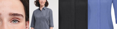 Smart and stylish shirt design in a fine poplin fabric with two fits available for both male (tailored and classic) and female (fitted and classic) styles. Concealed placket. Stylish yoke design. Darts on bust front hem and back panel for fitted shape. Decorative top stitch on darts. ¾ length sleeves. 2 button adjustable narrow cuff. Rounded hem.