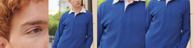 Contrast raglan sleeves with jersey piping. Knitted collar with taped neck. Contrast raglan sleeves with contrast piping at armholes. Two matching button placket. Twin needle finishing.