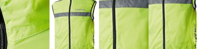 Tear and release fastening. Sleeveless waistcoat. Two reflective tape bands around torso. Reflective tape band over each shoulder. Conforms to EN471: Class 2.