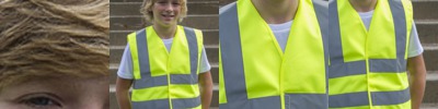 Sleeveless kids vest, Velcro front fastening, two reflective tape bands around torso, reflective tape band over each shoulder, Conforms to EN1150. Size Age (to fit) 4/6 - 28/30" 7/9 - 31/33" 10/12 - 34/36"