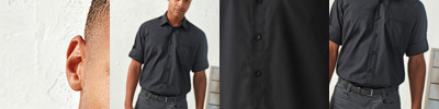 Roll up sleeve with button tab fastening allowing sleeves to be neatly rolled up. Left breast vented jet pocket. Allows Embroidery above and below pocket. Stiffened formal cut collar with 2 button fastening for adjustable cuff.