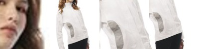 Feminine classic nautical jacket. Feminine fitted design. Front covered full-length zip with oval Velcro® tabs and 1 press-stud fastening at bottom. Hood concealed inside the collar, removable with a zip. Adjustable collar with drawstring and 2 stoppers. 2 front pockets with zips hidden by design flaps in contrasted colour. Lining, zips, Velcro® and all accessories in contrasted colour. Open hem, adjustable elasticated cord with 2 stoppers and 'low back' design. Adjustable cuffs with contrasted oval Velcro® tabs. Easy access for printing and embroidery via a zip opening at the base of the lining.